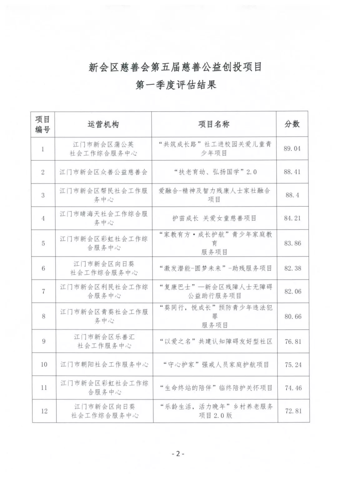 新会区慈善会第五届慈善公益创投项目